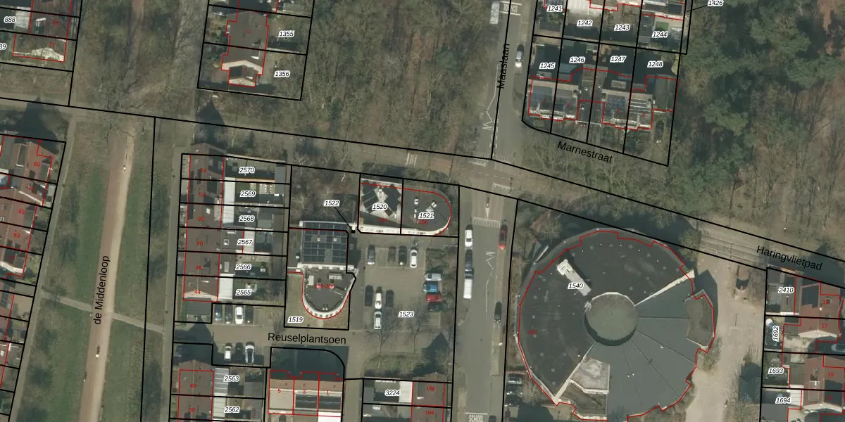 Het perceel waarop het adres ligt is HMD00-O-1521. De afkorting 'HMD00' staat voor kadastrale gemeente Helmond. De gemiddelde perceelgrootte in Helmond is 1470,75 m². Dit perceel is kleiner: de perceeloppervlakte bedraagt 173 m². Het grootste perceel in de kadastrale gemeente is 1,14 km². Het kleinste perceel heeft een oppervlakte van 0 m². Er zijn geen andere adressen aanwezig op het perceel. De huidige grenzen van het perceel zijn digitaal in de Basisregistratie Kadaster (BRK) geregistreerd op 05-02-2009.