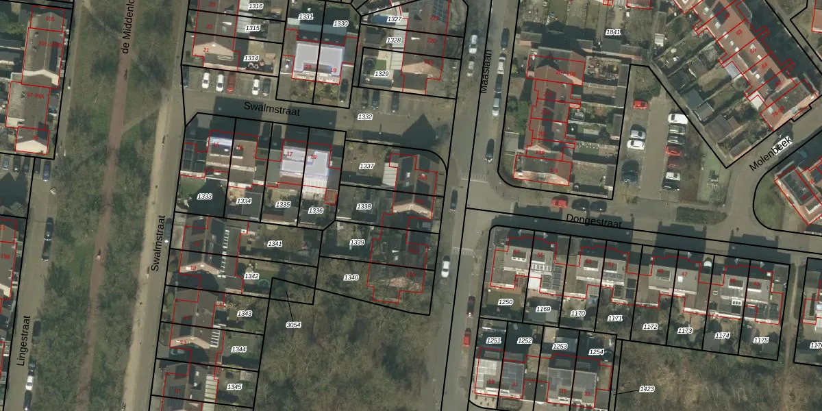 Het perceel waarop het adres ligt is HMD00-O-1338. De afkorting 'HMD00' staat voor kadastrale gemeente Helmond. De gemiddelde perceelgrootte in Helmond is 1470,75 m². Dit perceel is kleiner: de perceeloppervlakte bedraagt 229 m². Het kleinste perceel in de kadastrale gemeente is 0 m² groot. De grootste perceeloppervlakte is 1,14 km². Dit is het enige adres dat aanwezig is op het perceel. De huidige grenzen van het perceel zijn digitaal in de Basisregistratie Kadaster (BRK) geregistreerd op 05-02-2009.