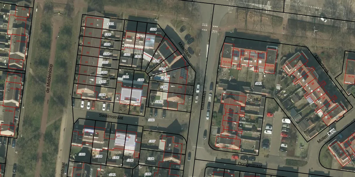 Maaslaan 220 is gelegen op kadastraal perceel HMD00O1328. Deze kadastrale aanduiding is uniek en wordt gebruikt door het Kadaster om eigendomsrechten en andere zakelijke rechten vast te leggen. Het perceel maakt onderdeel uit van de kadastrale gemeente Helmond.