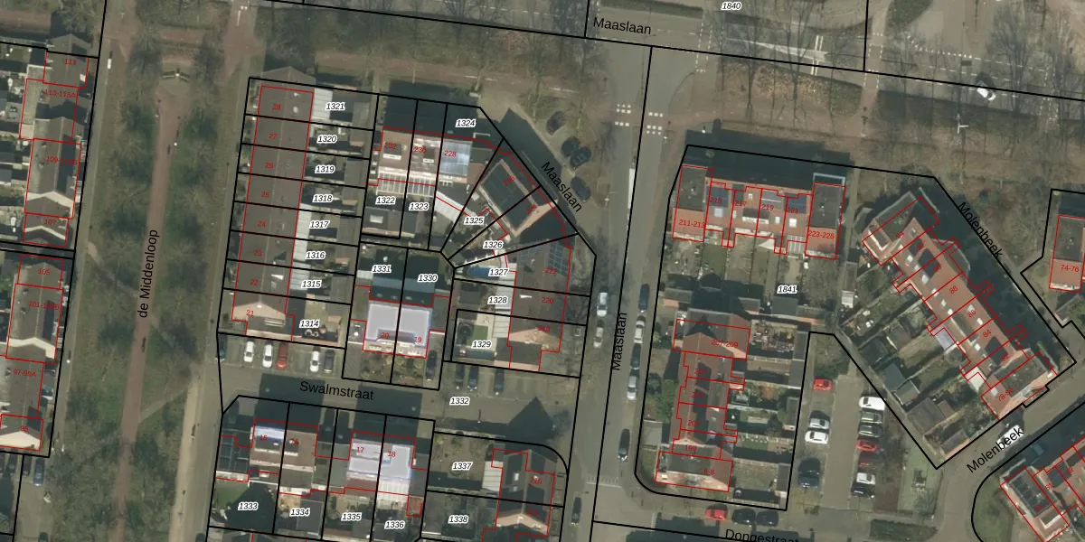 Het perceel waarop Maaslaan 222 staat heeft een oppervlakte van 180 m². Dit is een middelgroot perceel. De perceeloppervlakte wordt geregistreerd door het Kadaster. Gedetailleerde informatie over de maten van dit perceel kunt u vinden in het rapport Kadastrale kaart met maatvoering van Maaslaan 222.
