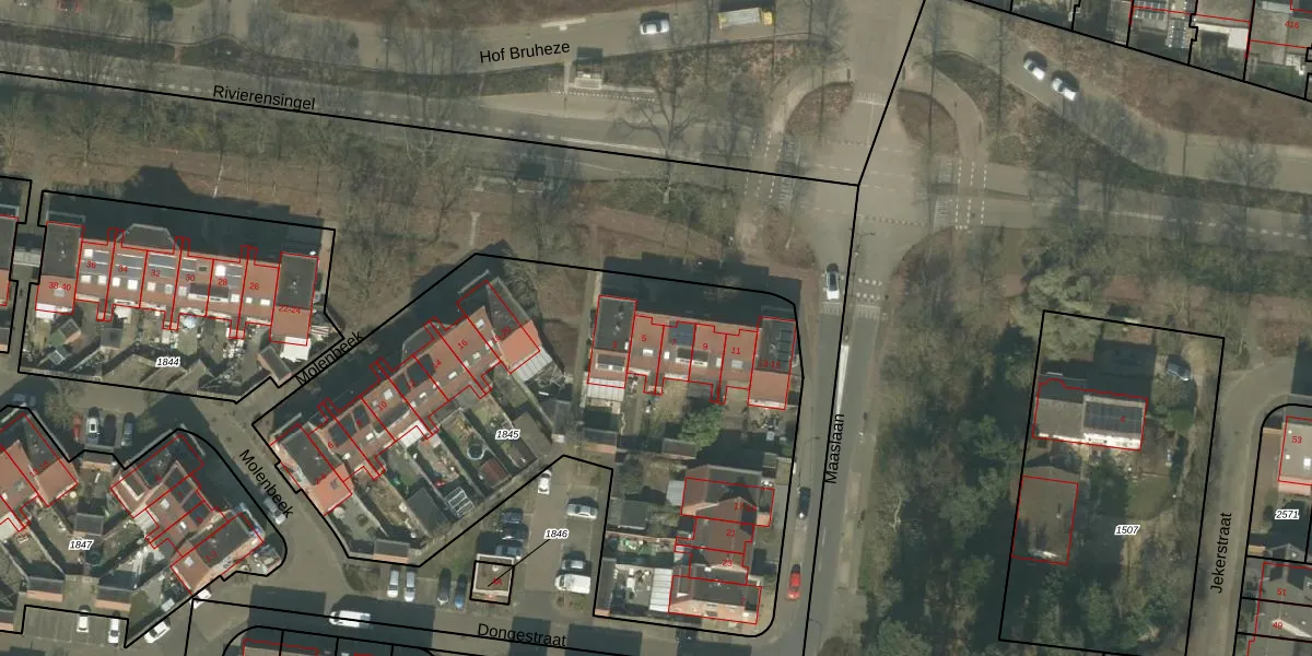 Het perceel waarop Maaslaan 5 staat heeft een oppervlakte van 3118 m². Dit is een zeer groot perceel. De perceeloppervlakte wordt geregistreerd door het Kadaster. Gedetailleerde informatie over de maten van dit perceel kunt u vinden in het rapport Kadastrale kaart met maatvoering van Maaslaan 5.