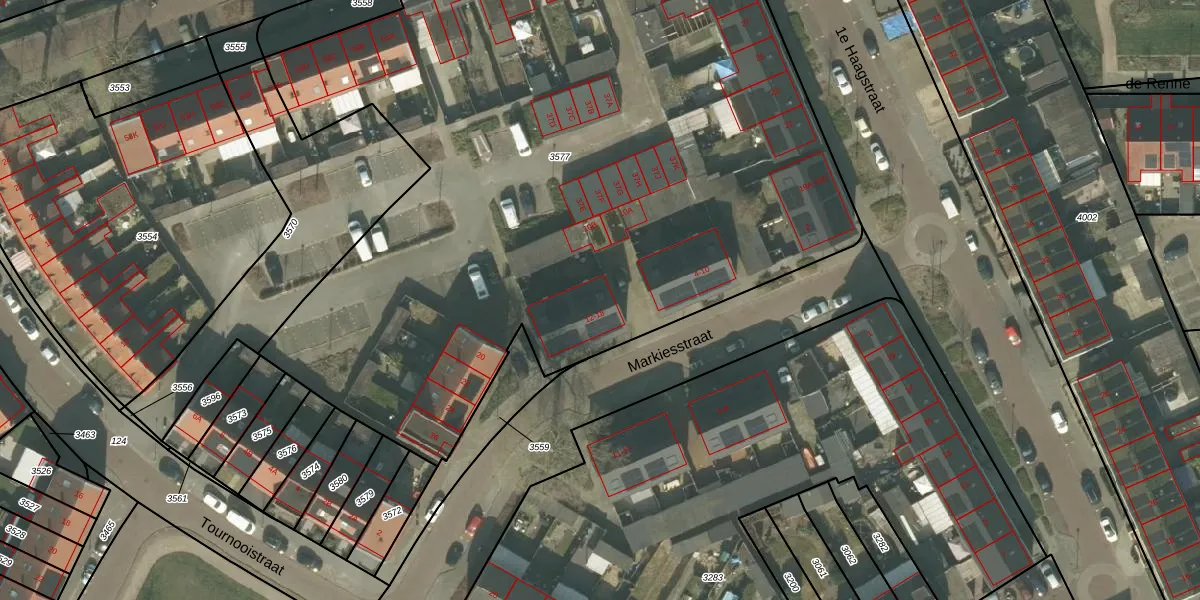 Markiesstraat 12 is gelegen op kadastraal perceel HMD00G3577. Deze kadastrale aanduiding is uniek en wordt gebruikt door het Kadaster om eigendomsrechten en andere zakelijke rechten vast te leggen. Het perceel maakt onderdeel uit van de kadastrale gemeente Helmond.