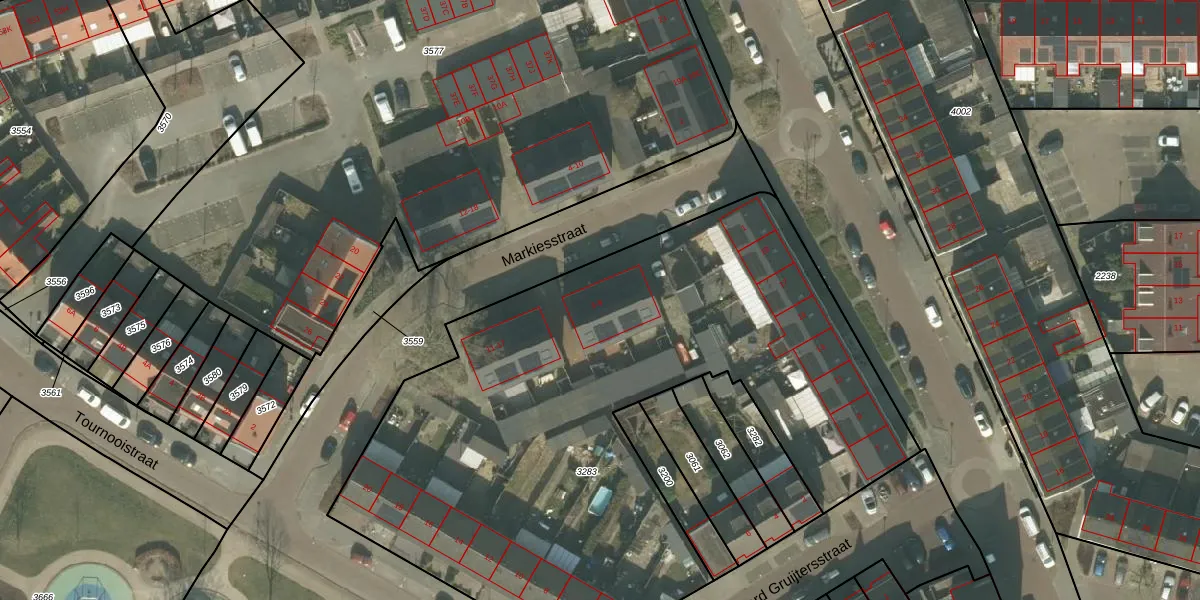 Markiesstraat 7 is gelegen op kadastraal perceel HMD00G3283. Deze kadastrale aanduiding is uniek en wordt gebruikt door het Kadaster om eigendomsrechten en andere zakelijke rechten vast te leggen. Het perceel maakt onderdeel uit van de kadastrale gemeente Helmond.
