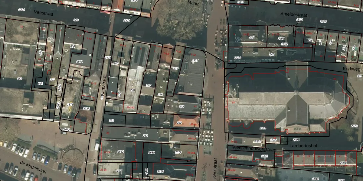 Het perceel waarop Markt 1-D staat heeft een oppervlakte van 347 m². Dit is een groot perceel. De perceeloppervlakte wordt geregistreerd door het Kadaster. Gedetailleerde informatie over de maten van dit perceel kunt u vinden in het rapport Kadastrale kaart met maatvoering van Markt 1-D.