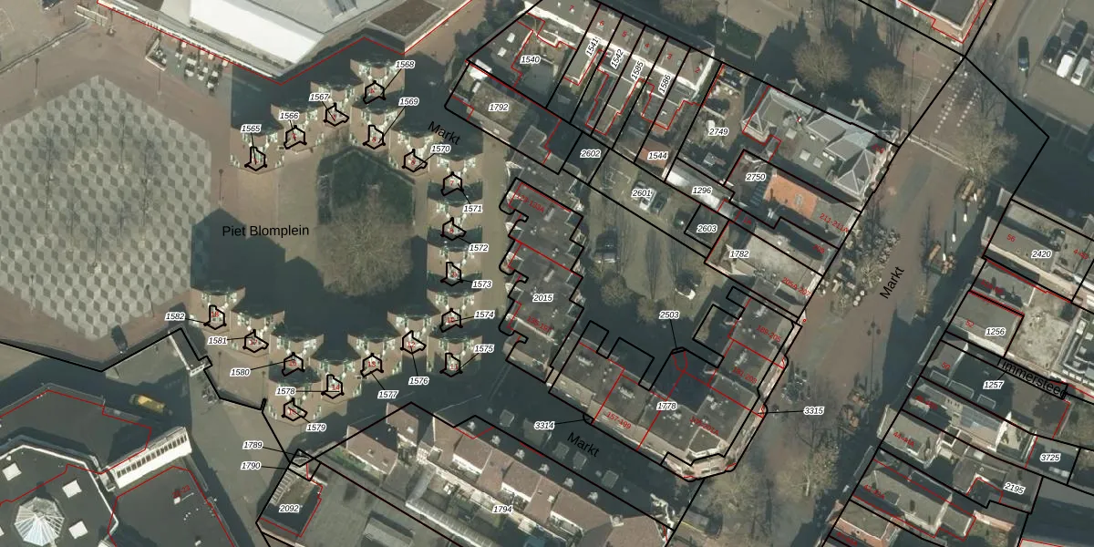 Het perceel waarop Markt 137 staat heeft een oppervlakte van 389 m². Dit is een groot perceel. De perceeloppervlakte wordt geregistreerd door het Kadaster. Gedetailleerde informatie over de maten van dit perceel kunt u vinden in het rapport Kadastrale kaart met maatvoering van Markt 137.