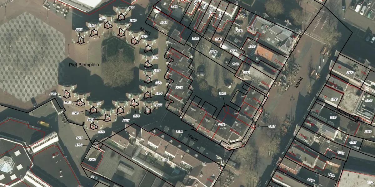 Het perceel waarop Markt 139-A staat heeft een oppervlakte van 389 m². Dit is een groot perceel. De perceeloppervlakte wordt geregistreerd door het Kadaster. Gedetailleerde informatie over de maten van dit perceel kunt u vinden in het rapport Kadastrale kaart met maatvoering van Markt 139-A.