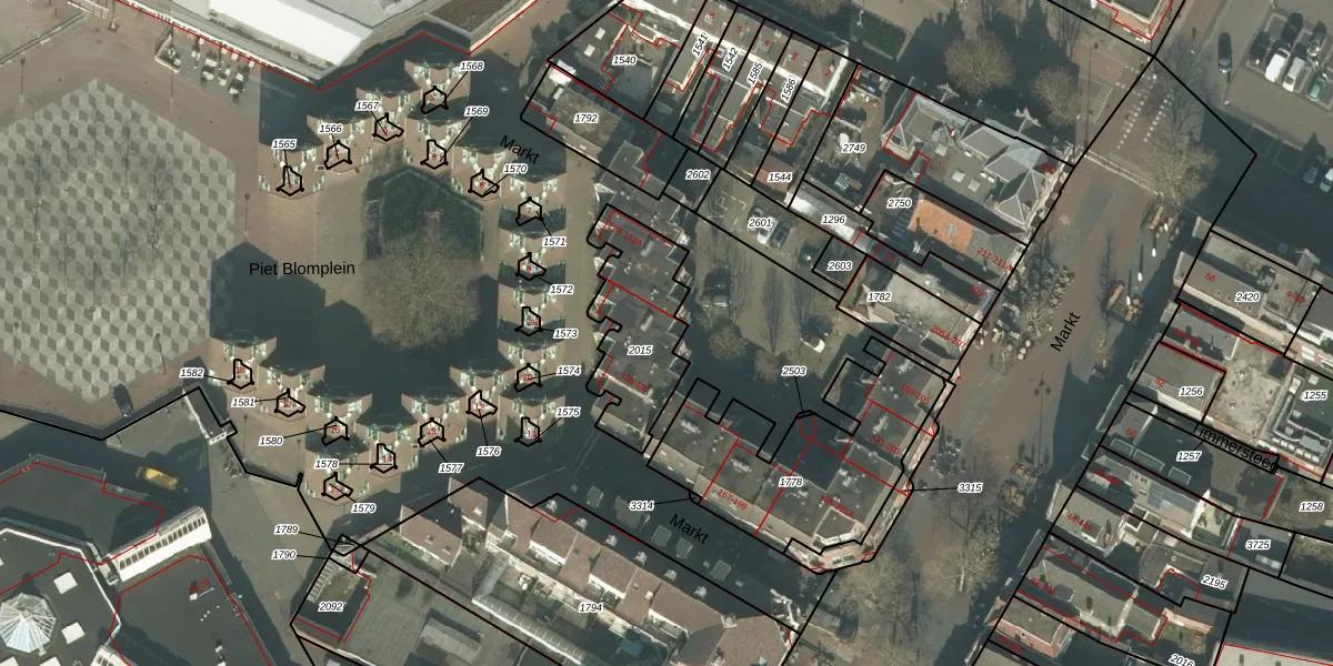 Het perceel waarop Markt 139 staat heeft een oppervlakte van 389 m². Dit is een groot perceel. De perceeloppervlakte wordt geregistreerd door het Kadaster. Gedetailleerde informatie over de maten van dit perceel kunt u vinden in het rapport Kadastrale kaart met maatvoering van Markt 139.