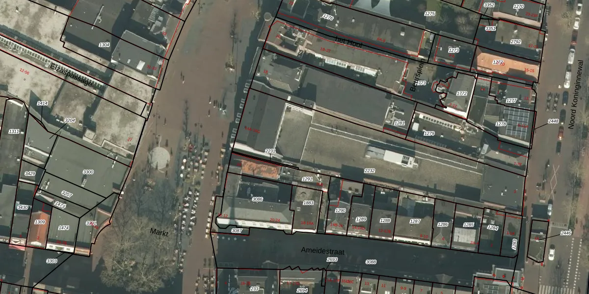 Het perceel waarop Markt 16-F staat heeft een oppervlakte van 1799 m². Dit is een zeer groot perceel. De perceeloppervlakte wordt geregistreerd door het Kadaster. Gedetailleerde informatie over de maten van dit perceel kunt u vinden in het rapport Kadastrale kaart met maatvoering van Markt 16-F.