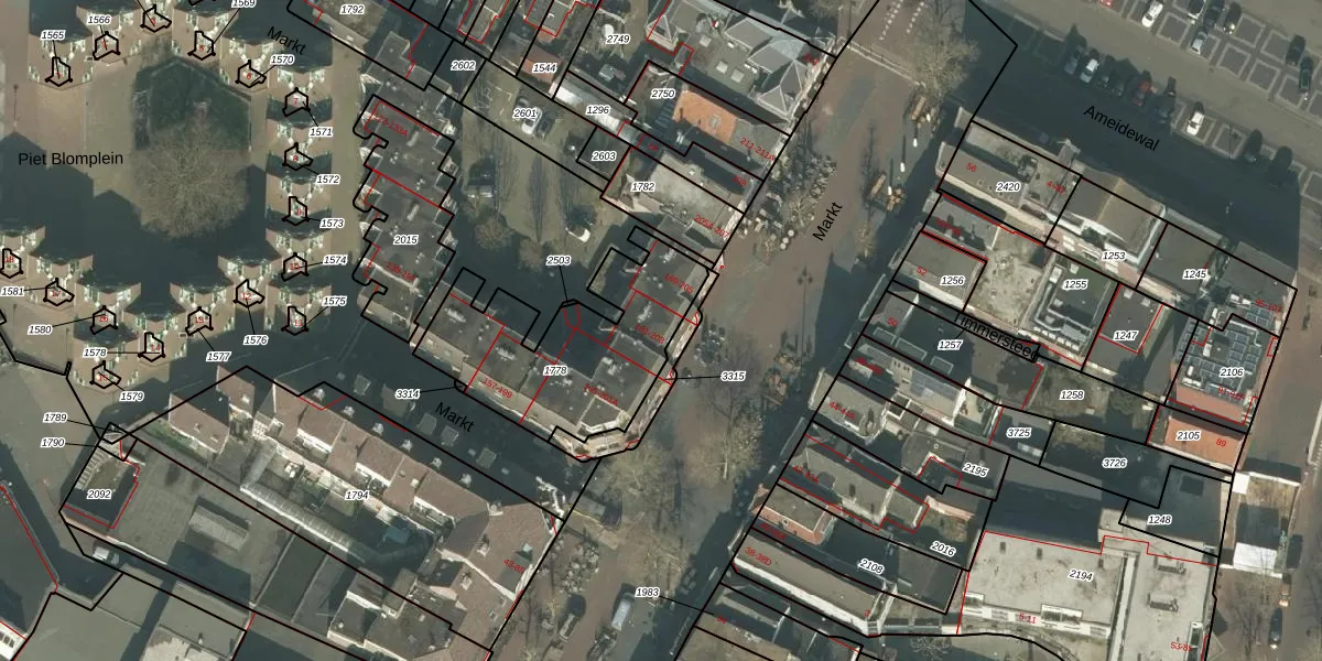 Het perceel waarop Markt 181 staat heeft een oppervlakte van 737 m². Dit is een groot perceel. De perceeloppervlakte wordt geregistreerd door het Kadaster. Gedetailleerde informatie over de maten van dit perceel kunt u vinden in het rapport Kadastrale kaart met maatvoering van Markt 181.