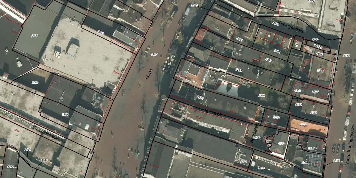 Het perceel waarop Markt 22 staat heeft een oppervlakte van 565 m². Dit is een groot perceel. De perceeloppervlakte wordt geregistreerd door het Kadaster. Gedetailleerde informatie over de maten van dit perceel kunt u vinden in het rapport Kadastrale kaart met maatvoering van Markt 22.