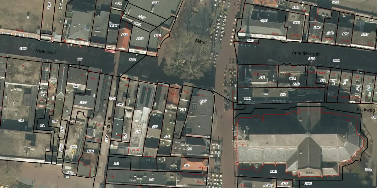 Het perceel waarop Markt 3 staat heeft een oppervlakte van 146 m². Dit is een middelgroot perceel. De perceeloppervlakte wordt geregistreerd door het Kadaster. Gedetailleerde informatie over de maten van dit perceel kunt u vinden in het rapport Kadastrale kaart met maatvoering van Markt 3.