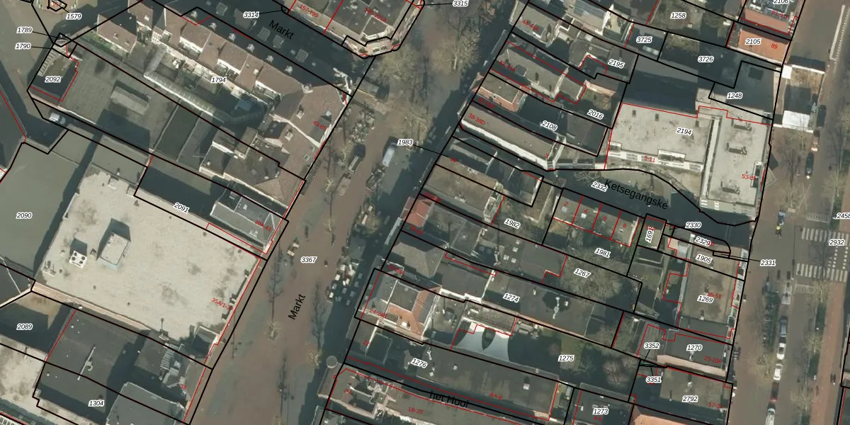 Het perceel waarop Markt 30 staat heeft een oppervlakte van 500 m². Dit is een groot perceel. De perceeloppervlakte wordt geregistreerd door het Kadaster. Gedetailleerde informatie over de maten van dit perceel kunt u vinden in het rapport Kadastrale kaart met maatvoering van Markt 30.