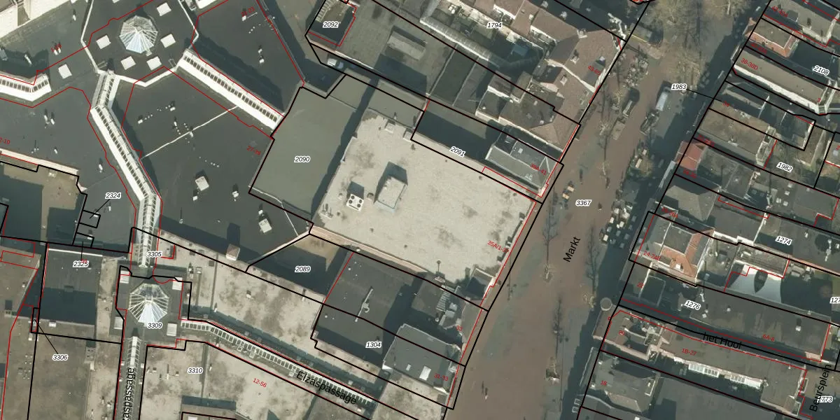 Het perceel waarop Markt 35-B-6 staat heeft een oppervlakte van 2030 m². Dit is een zeer groot perceel. De perceeloppervlakte wordt geregistreerd door het Kadaster. Gedetailleerde informatie over de maten van dit perceel kunt u vinden in het rapport Kadastrale kaart met maatvoering van Markt 35-B-6.