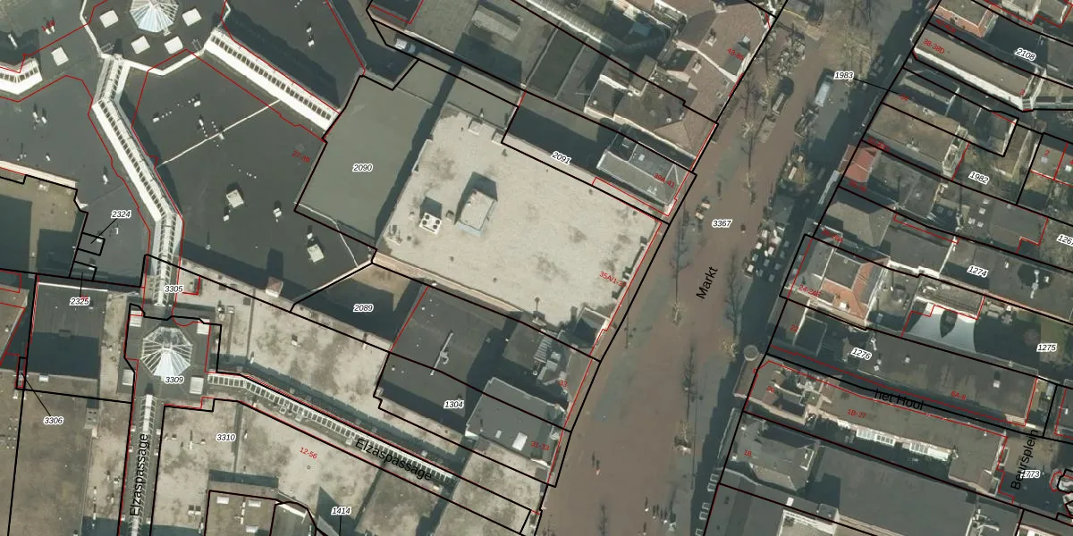 Het perceel waarop Markt 35-A-4 staat heeft een oppervlakte van 2030 m². Dit is een zeer groot perceel. De perceeloppervlakte wordt geregistreerd door het Kadaster. Gedetailleerde informatie over de maten van dit perceel kunt u vinden in het rapport Kadastrale kaart met maatvoering van Markt 35-A-4.