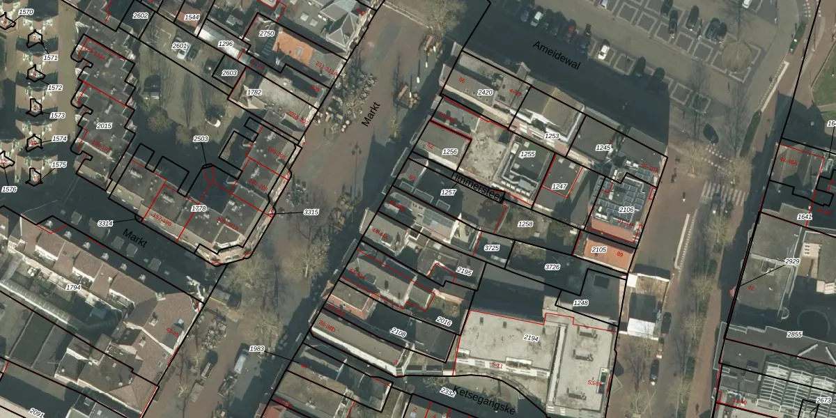 Het perceel waarop Markt 48 staat heeft een oppervlakte van 230 m². Dit is een middelgroot perceel. De perceeloppervlakte wordt geregistreerd door het Kadaster. Gedetailleerde informatie over de maten van dit perceel kunt u vinden in het rapport Kadastrale kaart met maatvoering van Markt 48.