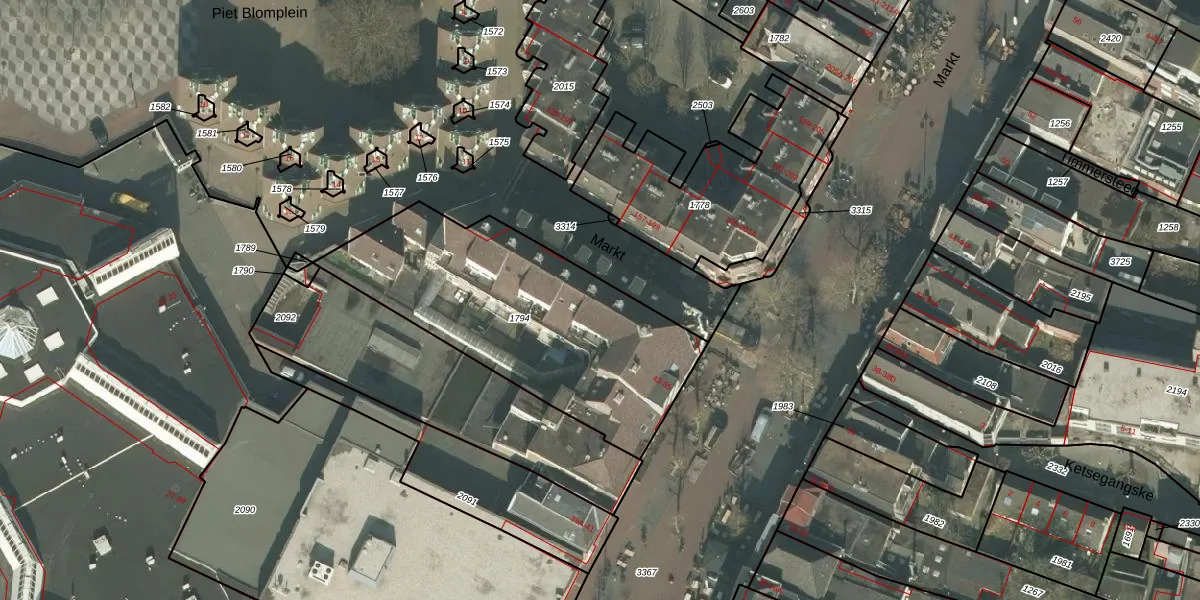 Het perceel waarop Markt 49 staat heeft een oppervlakte van 1230 m². Dit is een zeer groot perceel. De perceeloppervlakte wordt geregistreerd door het Kadaster. Gedetailleerde informatie over de maten van dit perceel kunt u vinden in het rapport Kadastrale kaart met maatvoering van Markt 49.