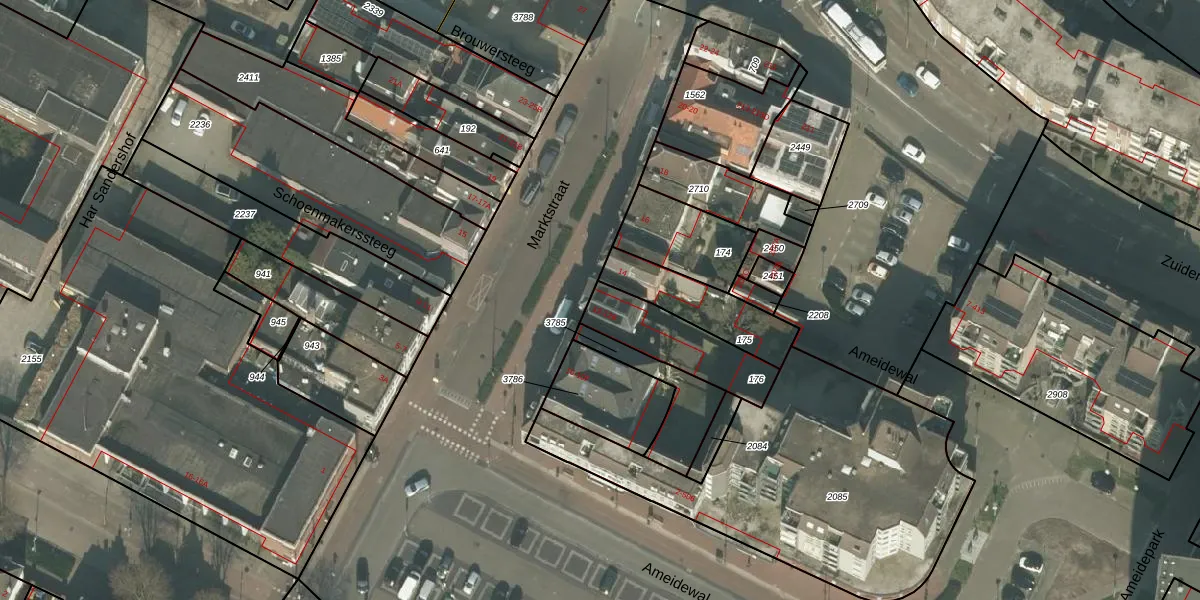 Het perceel waarop Marktstraat 12 staat heeft een oppervlakte van 257 m². Dit is een middelgroot perceel. De perceeloppervlakte wordt geregistreerd door het Kadaster. Gedetailleerde informatie over de maten van dit perceel kunt u vinden in het rapport Kadastrale kaart met maatvoering van Marktstraat 12.