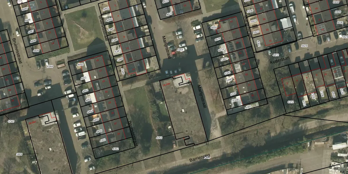 Het perceel waarop Marlijnstraat 34 staat heeft een oppervlakte van 635 m². Dit is een groot perceel. De perceeloppervlakte wordt geregistreerd door het Kadaster. Gedetailleerde informatie over de maten van dit perceel kunt u vinden in het rapport Kadastrale kaart met maatvoering van Marlijnstraat 34.