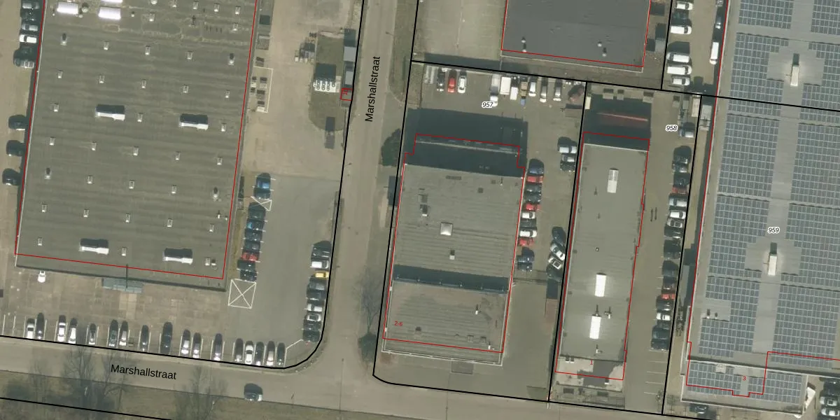 Het perceel waarop Marshallstraat 6 staat heeft een oppervlakte van 3230 m². Dit is een zeer groot perceel. De perceeloppervlakte wordt geregistreerd door het Kadaster. Gedetailleerde informatie over de maten van dit perceel kunt u vinden in het rapport Kadastrale kaart met maatvoering van Marshallstraat 6.