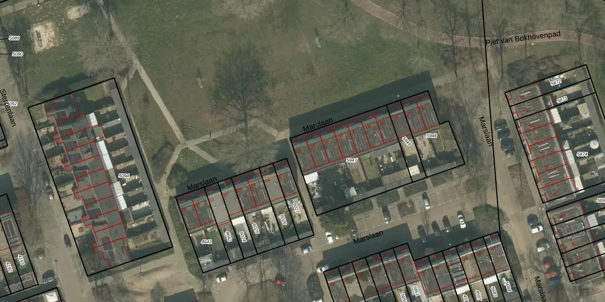Het perceel waarop Marslaan 100 staat heeft een oppervlakte van 911 m². Dit is een groot perceel. De perceeloppervlakte wordt geregistreerd door het Kadaster. Gedetailleerde informatie over de maten van dit perceel kunt u vinden in het rapport Kadastrale kaart met maatvoering van Marslaan 100.