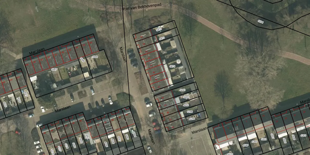 Het perceel waarop Marslaan 43 staat heeft een oppervlakte van 830 m². Dit is een groot perceel. De perceeloppervlakte wordt geregistreerd door het Kadaster. Gedetailleerde informatie over de maten van dit perceel kunt u vinden in het rapport Kadastrale kaart met maatvoering van Marslaan 43.
