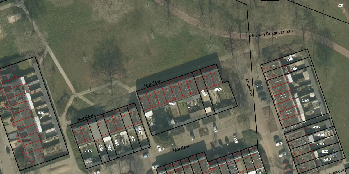 Marslaan 92 is gelegen op kadastraal perceel HMD00B5947. Deze kadastrale aanduiding is uniek en wordt gebruikt door het Kadaster om eigendomsrechten en andere zakelijke rechten vast te leggen. Het perceel maakt onderdeel uit van de kadastrale gemeente Helmond.
