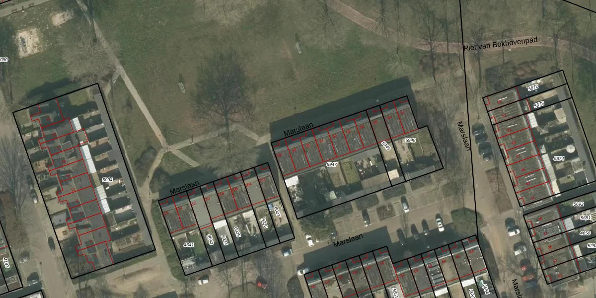 Het perceel waarop Marslaan 98 staat heeft een oppervlakte van 911 m². Dit is een groot perceel. De perceeloppervlakte wordt geregistreerd door het Kadaster. Gedetailleerde informatie over de maten van dit perceel kunt u vinden in het rapport Kadastrale kaart met maatvoering van Marslaan 98.
