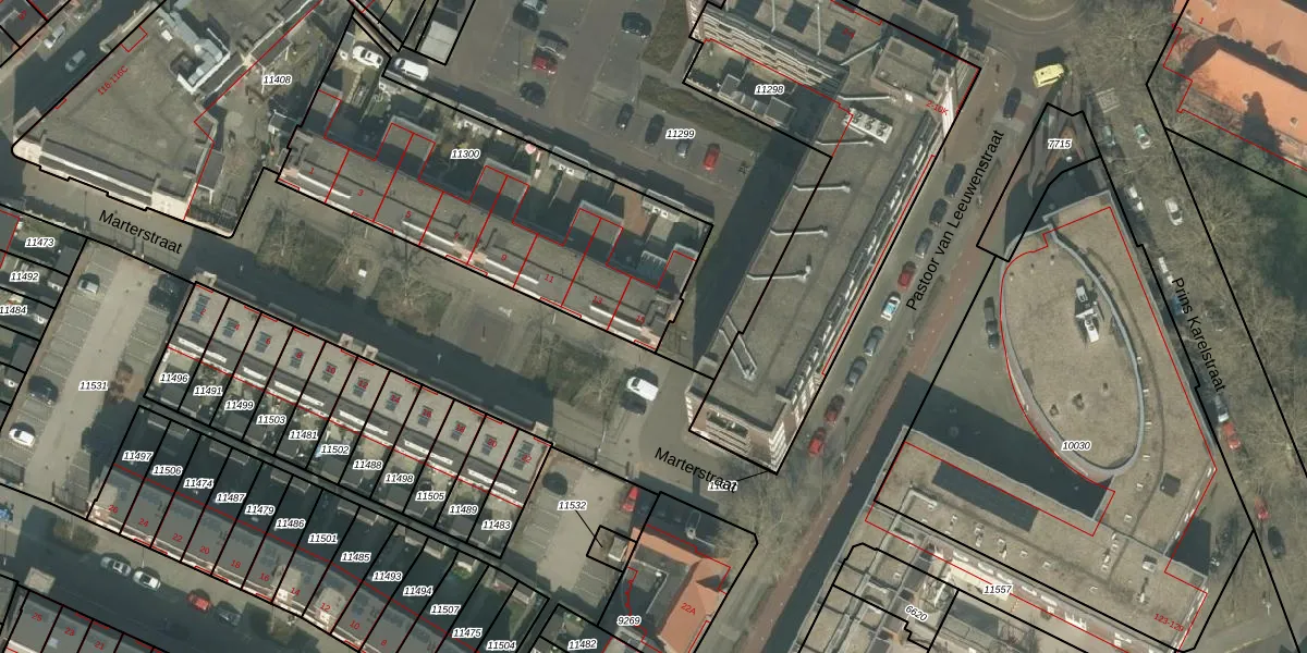 Marterstraat 15 is gelegen op kadastraal perceel HMD00C11300. Deze kadastrale aanduiding is uniek en wordt gebruikt door het Kadaster om eigendomsrechten en andere zakelijke rechten vast te leggen. Het perceel maakt onderdeel uit van de kadastrale gemeente Helmond.