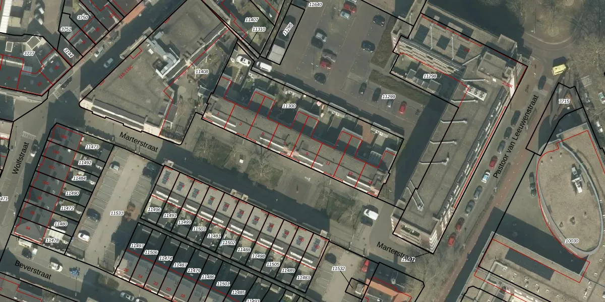 Marterstraat 9 is gelegen op kadastraal perceel HMD00C11300. Deze kadastrale aanduiding is uniek en wordt gebruikt door het Kadaster om eigendomsrechten en andere zakelijke rechten vast te leggen. Het perceel maakt onderdeel uit van de kadastrale gemeente Helmond.