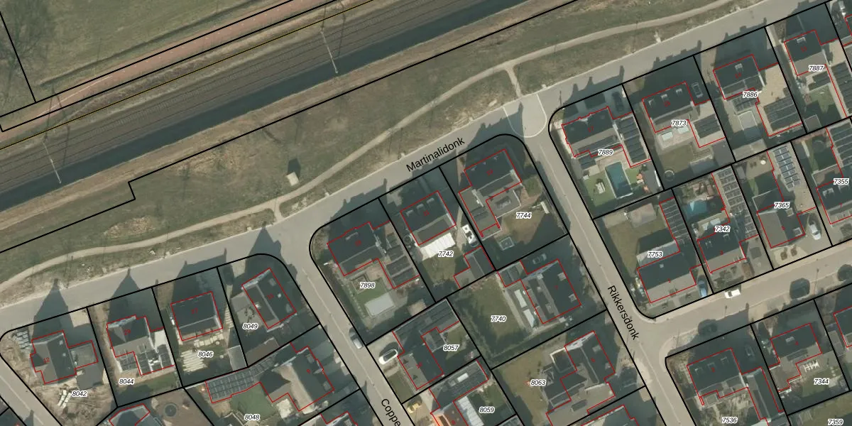 Het perceel waarop Martinalidonk 21 staat heeft een oppervlakte van 448 m². Dit is een groot perceel. De perceeloppervlakte wordt geregistreerd door het Kadaster. Gedetailleerde informatie over de maten van dit perceel kunt u vinden in het rapport Kadastrale kaart met maatvoering van Martinalidonk 21.