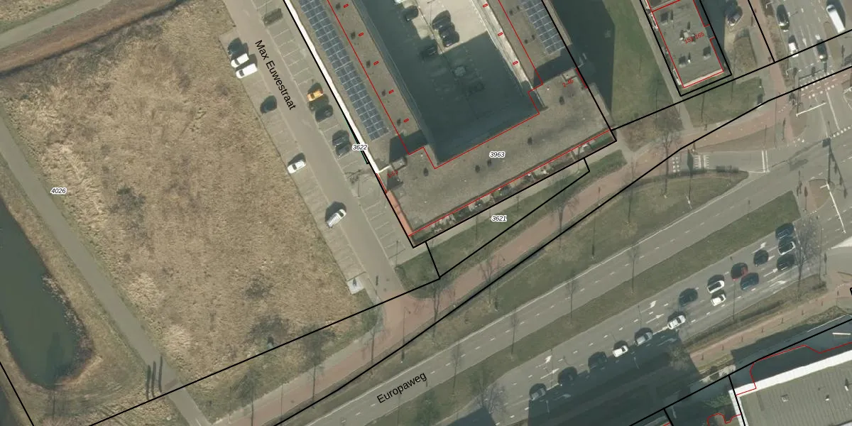 Het perceel waarop Max Euwestraat 2 staat heeft een oppervlakte van 3858 m². Dit is een zeer groot perceel. De perceeloppervlakte wordt geregistreerd door het Kadaster. Gedetailleerde informatie over de maten van dit perceel kunt u vinden in het rapport Kadastrale kaart met maatvoering van Max Euwestraat 2.