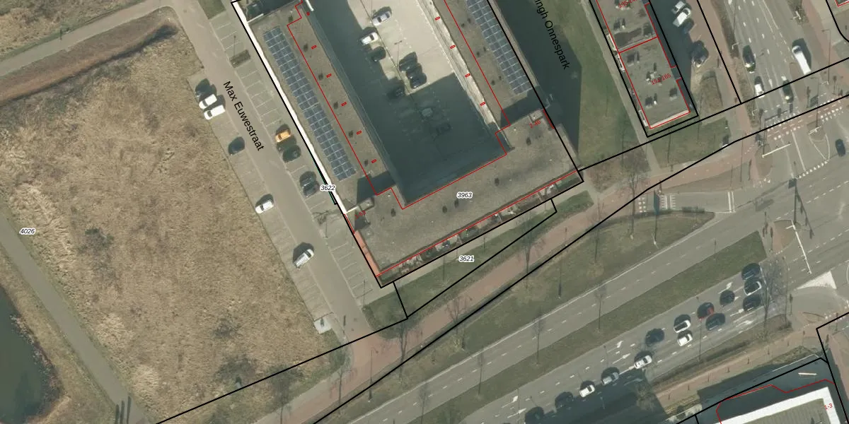 Het perceel waarop Max Euwestraat 24 staat heeft een oppervlakte van 3858 m². Dit is een zeer groot perceel. De perceeloppervlakte wordt geregistreerd door het Kadaster. Gedetailleerde informatie over de maten van dit perceel kunt u vinden in het rapport Kadastrale kaart met maatvoering van Max Euwestraat 24.