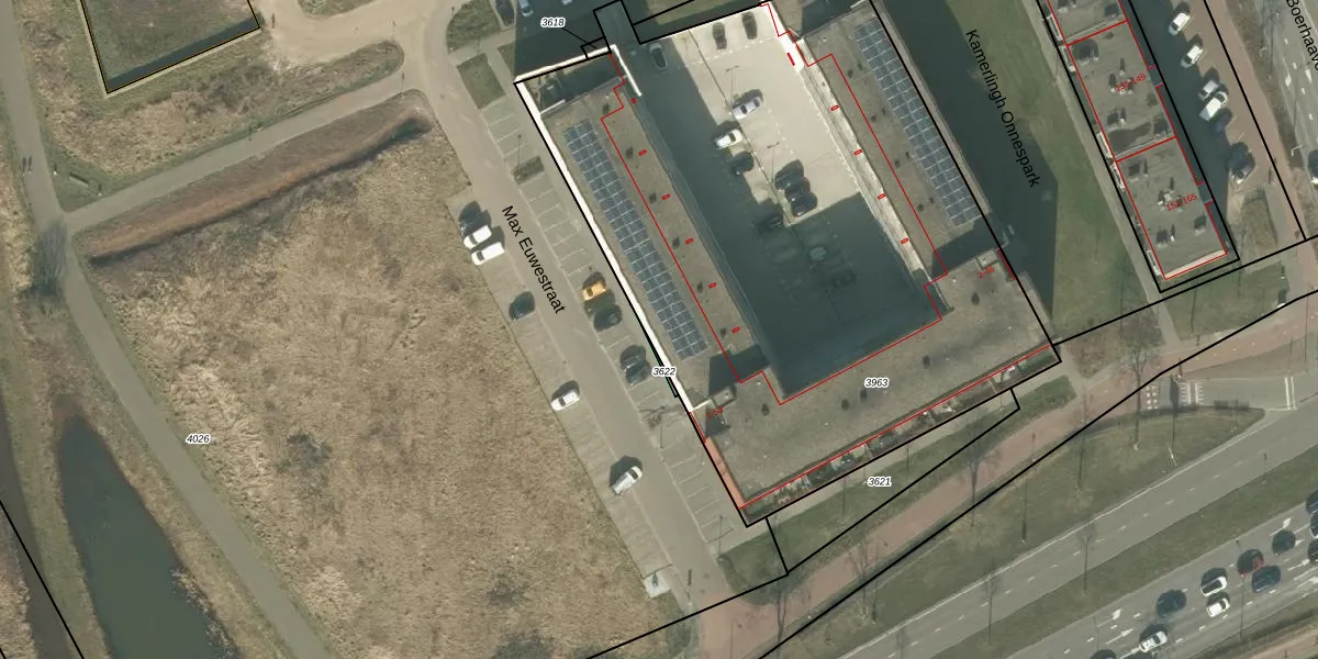 Het perceel waarop Max Euwestraat 3 staat heeft een oppervlakte van 3858 m². Dit is een zeer groot perceel. De perceeloppervlakte wordt geregistreerd door het Kadaster. Gedetailleerde informatie over de maten van dit perceel kunt u vinden in het rapport Kadastrale kaart met maatvoering van Max Euwestraat 3.