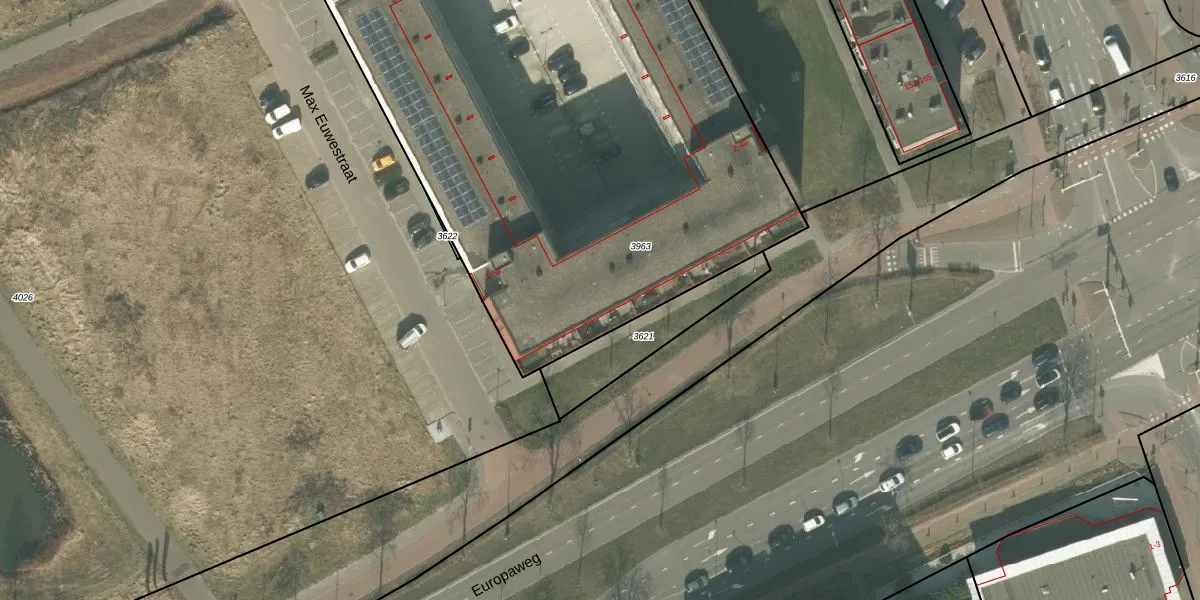 Het perceel waarop Max Euwestraat 4 staat heeft een oppervlakte van 3858 m². Dit is een zeer groot perceel. De perceeloppervlakte wordt geregistreerd door het Kadaster. Gedetailleerde informatie over de maten van dit perceel kunt u vinden in het rapport Kadastrale kaart met maatvoering van Max Euwestraat 4.