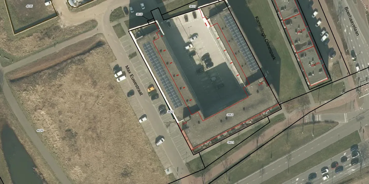Het perceel waarop Max Euwestraat 45 staat heeft een oppervlakte van 3858 m². Dit is een zeer groot perceel. De perceeloppervlakte wordt geregistreerd door het Kadaster. Gedetailleerde informatie over de maten van dit perceel kunt u vinden in het rapport Kadastrale kaart met maatvoering van Max Euwestraat 45.