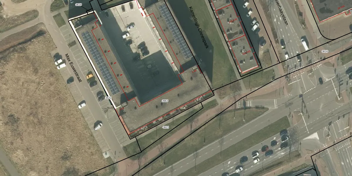 Het perceel waarop Max Euwestraat 48 staat heeft een oppervlakte van 3858 m². Dit is een zeer groot perceel. De perceeloppervlakte wordt geregistreerd door het Kadaster. Gedetailleerde informatie over de maten van dit perceel kunt u vinden in het rapport Kadastrale kaart met maatvoering van Max Euwestraat 48.