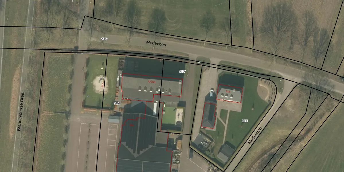 Het perceel waarop Medevoort 23 staat heeft een oppervlakte van 890 m². Dit is een groot perceel. De perceeloppervlakte wordt geregistreerd door het Kadaster. Gedetailleerde informatie over de maten van dit perceel kunt u vinden in het rapport Kadastrale kaart met maatvoering van Medevoort 23.