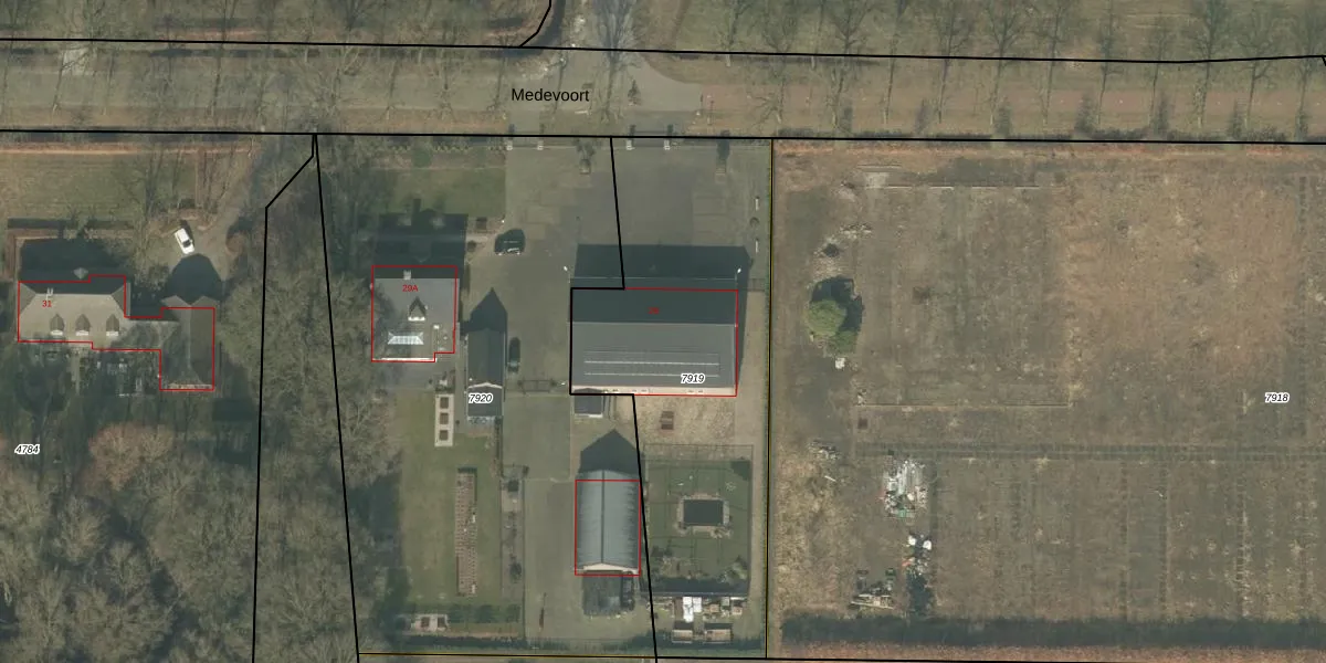 Medevoort 29 is gelegen op kadastraal perceel HMD00U7919. Deze kadastrale aanduiding is uniek en wordt gebruikt door het Kadaster om eigendomsrechten en andere zakelijke rechten vast te leggen. Het perceel maakt onderdeel uit van de kadastrale gemeente Helmond.