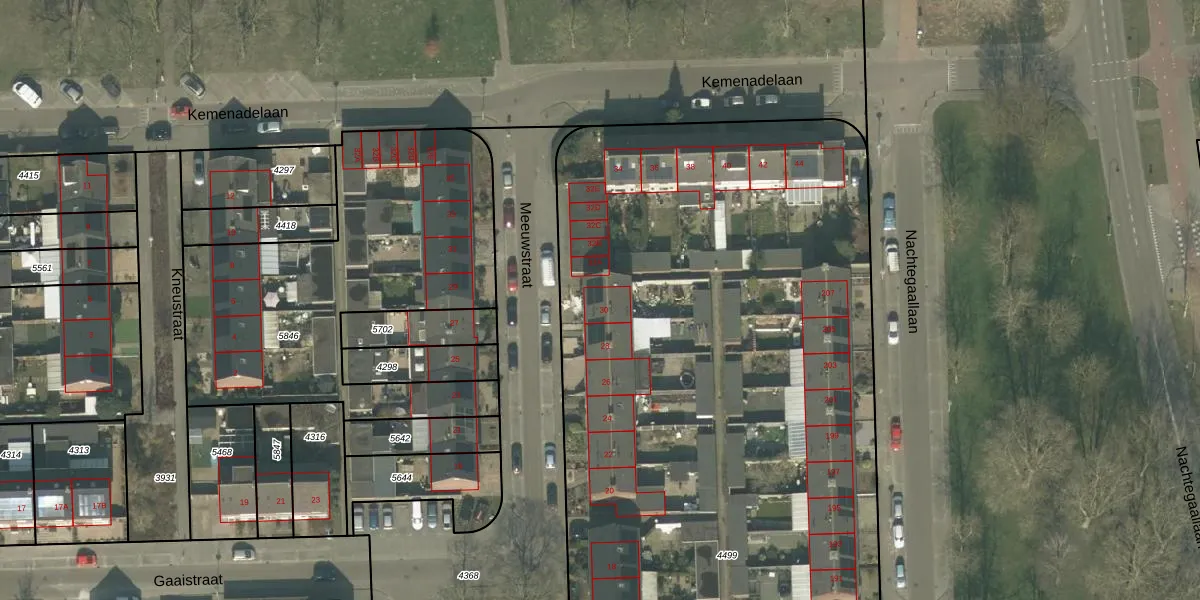 Het perceel waarop Meeuwstraat 30 staat heeft een oppervlakte van 6740 m². Dit is een zeer groot perceel. De perceeloppervlakte wordt geregistreerd door het Kadaster. Gedetailleerde informatie over de maten van dit perceel kunt u vinden in het rapport Kadastrale kaart met maatvoering van Meeuwstraat 30.