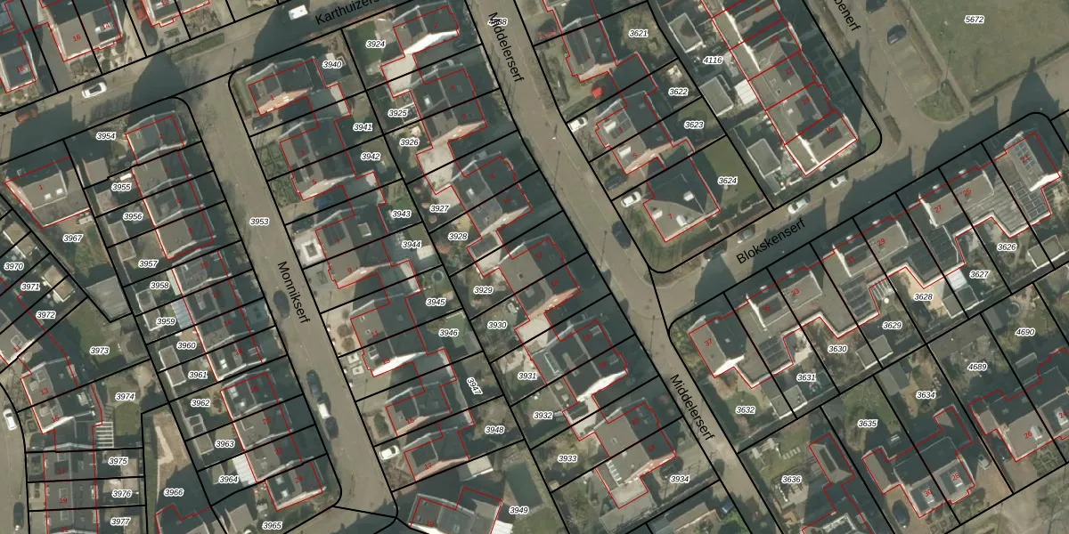 Middelerserf 12 is gelegen op kadastraal perceel HMD00U3929. Deze kadastrale aanduiding is uniek en wordt gebruikt door het Kadaster om eigendomsrechten en andere zakelijke rechten vast te leggen. Het perceel maakt onderdeel uit van de kadastrale gemeente Helmond.