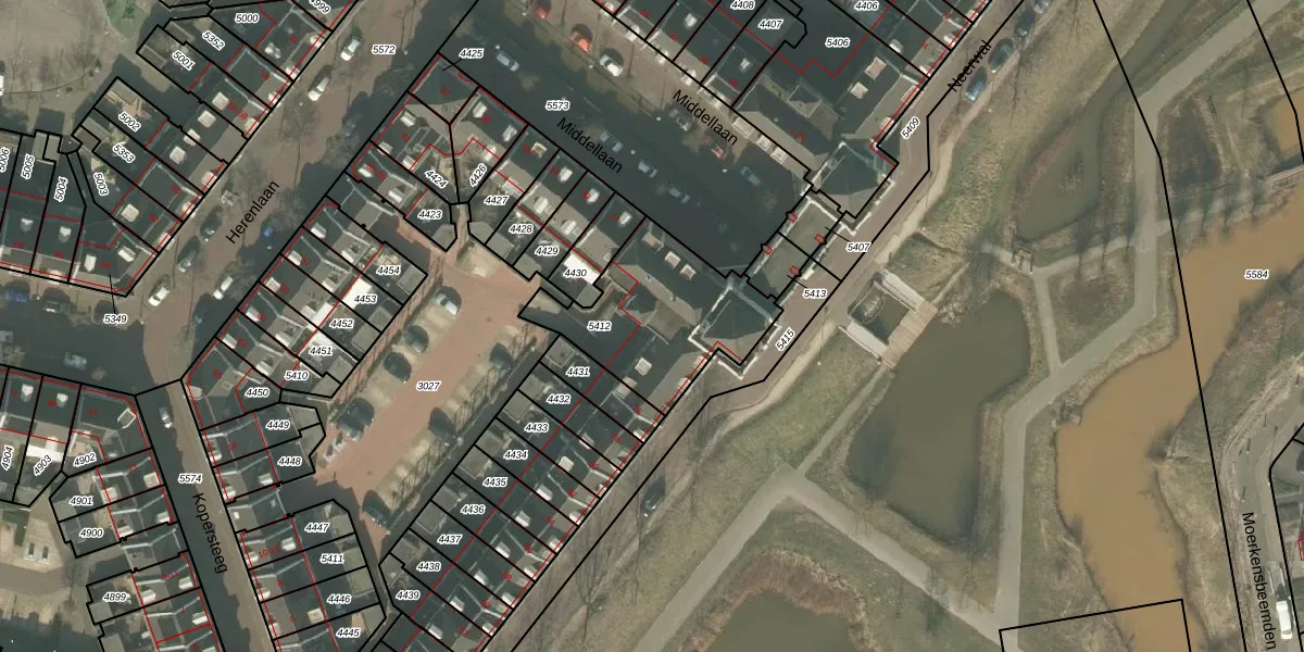 Het perceel waarop Middellaan 23 staat heeft een oppervlakte van 554 m². Dit is een groot perceel. De perceeloppervlakte wordt geregistreerd door het Kadaster. Gedetailleerde informatie over de maten van dit perceel kunt u vinden in het rapport Kadastrale kaart met maatvoering van Middellaan 23.