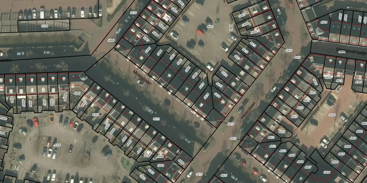 Middellaan 44 is gelegen op kadastraal perceel HMD00U5480. Deze kadastrale aanduiding is uniek en wordt gebruikt door het Kadaster om eigendomsrechten en andere zakelijke rechten vast te leggen. Het perceel maakt onderdeel uit van de kadastrale gemeente Helmond.