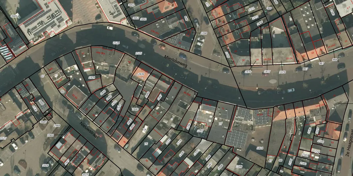 Het perceel waarop Mierloseweg 41 staat heeft een oppervlakte van 310 m². Dit is een groot perceel. De perceeloppervlakte wordt geregistreerd door het Kadaster. Gedetailleerde informatie over de maten van dit perceel kunt u vinden in het rapport Kadastrale kaart met maatvoering van Mierloseweg 41.