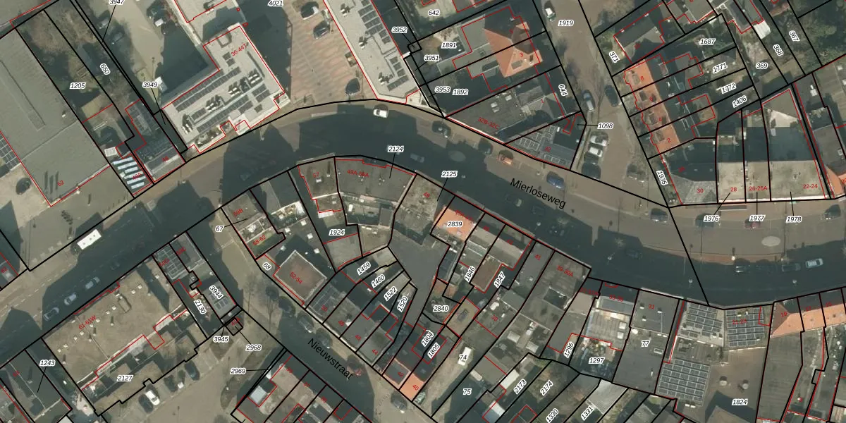 Mierloseweg 49-A is gelegen op kadastraal perceel HMD00G2125. Deze kadastrale aanduiding is uniek en wordt gebruikt door het Kadaster om eigendomsrechten en andere zakelijke rechten vast te leggen. Het perceel maakt onderdeel uit van de kadastrale gemeente Helmond.
