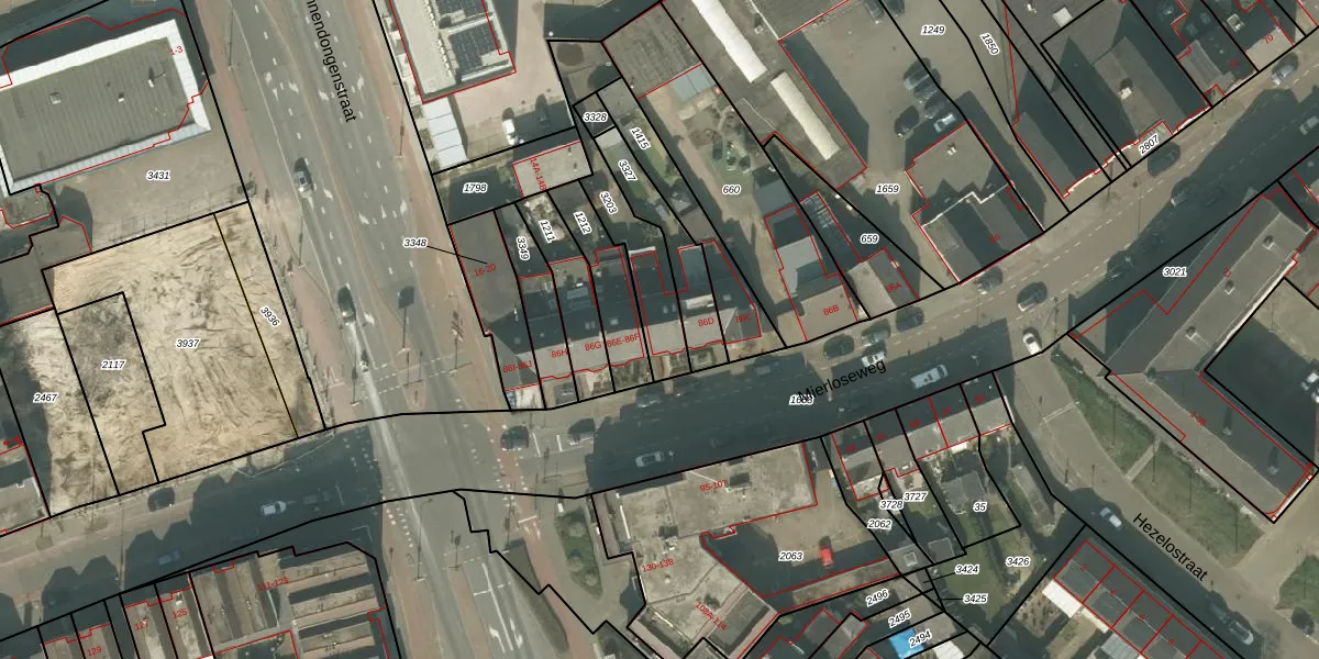 Mierloseweg 86-E is gelegen op kadastraal perceel HMD00G3203. Deze kadastrale aanduiding is uniek en wordt gebruikt door het Kadaster om eigendomsrechten en andere zakelijke rechten vast te leggen. Het perceel maakt onderdeel uit van de kadastrale gemeente Helmond.