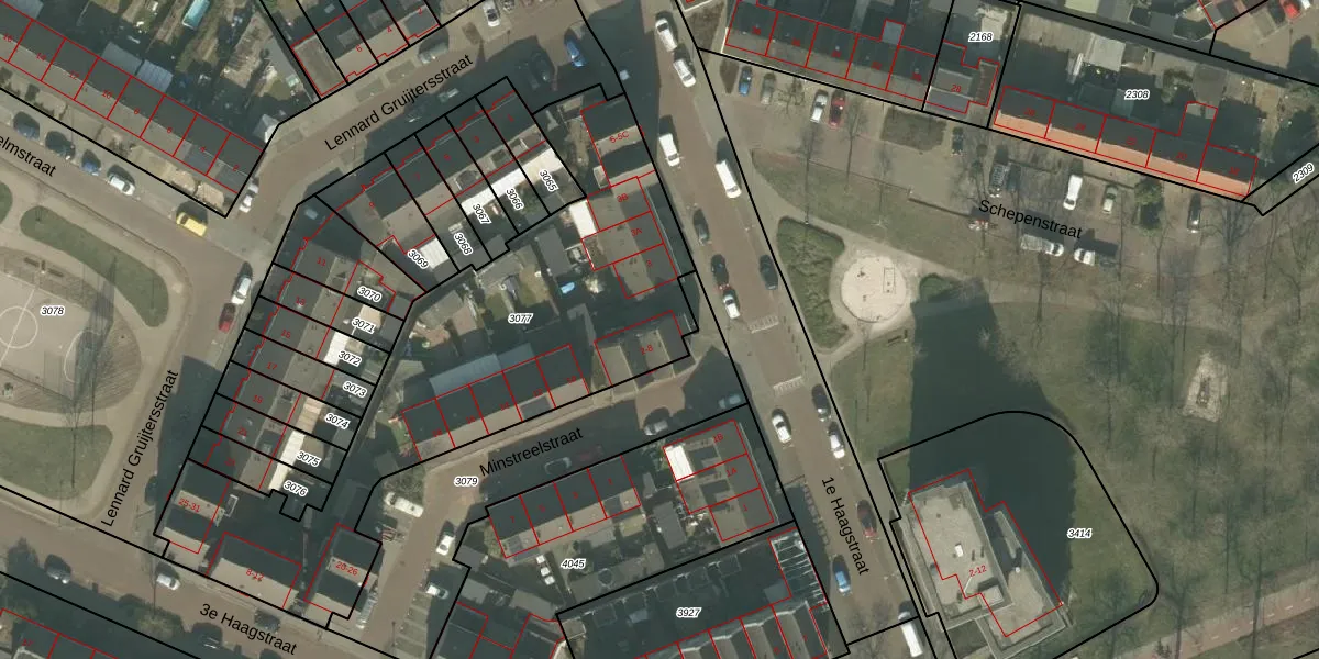 Het perceel waarop Minstreelstraat 8 staat heeft een oppervlakte van 2010 m². Dit is een zeer groot perceel. De perceeloppervlakte wordt geregistreerd door het Kadaster. Gedetailleerde informatie over de maten van dit perceel kunt u vinden in het rapport Kadastrale kaart met maatvoering van Minstreelstraat 8.