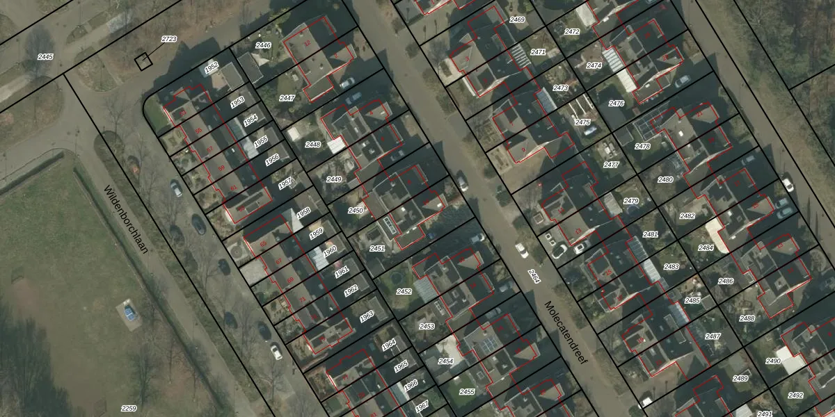 Het perceel waarop Molecatendreef 10 staat heeft een oppervlakte van 341 m². Dit is een groot perceel. De perceeloppervlakte wordt geregistreerd door het Kadaster. Gedetailleerde informatie over de maten van dit perceel kunt u vinden in het rapport Kadastrale kaart met maatvoering van Molecatendreef 10.
