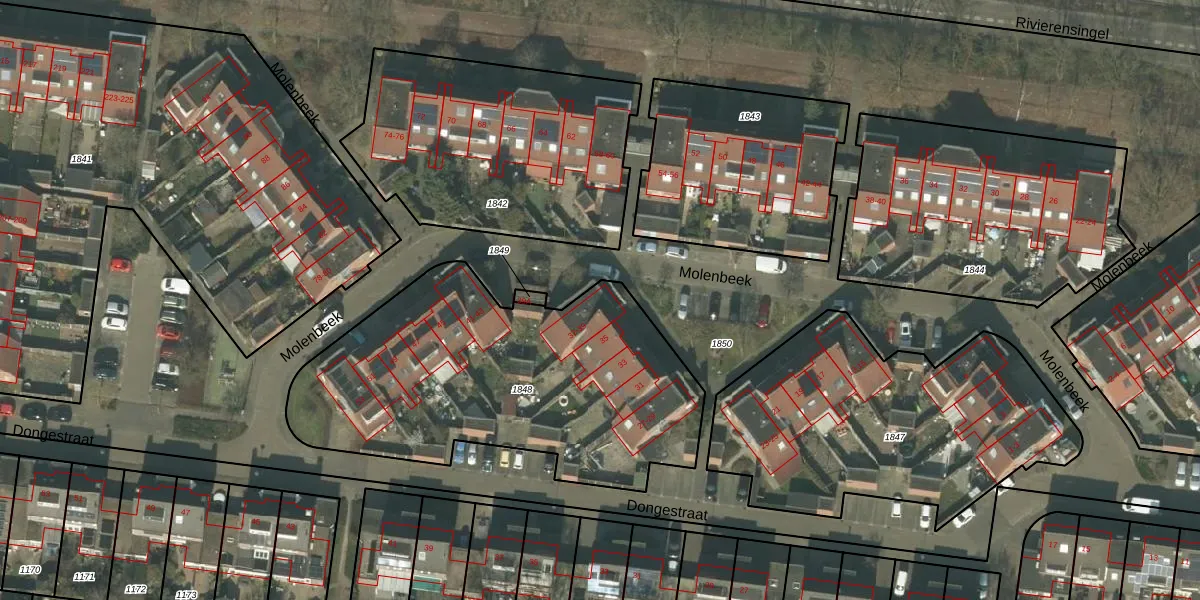Het perceel waarop Molenbeek 39 staat heeft een oppervlakte van 1729 m². Dit is een zeer groot perceel. De perceeloppervlakte wordt geregistreerd door het Kadaster. Gedetailleerde informatie over de maten van dit perceel kunt u vinden in het rapport Kadastrale kaart met maatvoering van Molenbeek 39.