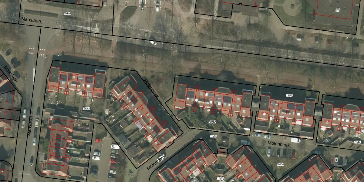 Het perceel waarop Molenbeek 76 staat heeft een oppervlakte van 1212 m². Dit is een zeer groot perceel. De perceeloppervlakte wordt geregistreerd door het Kadaster. Gedetailleerde informatie over de maten van dit perceel kunt u vinden in het rapport Kadastrale kaart met maatvoering van Molenbeek 76.