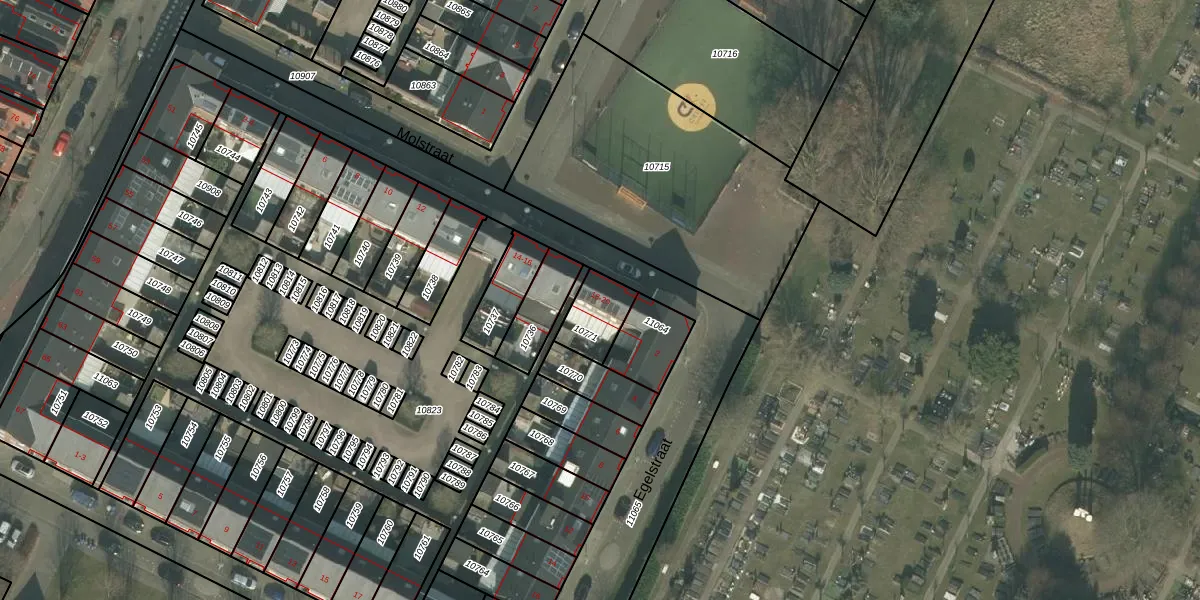 Gebruik de zoekbalk of klik op een perceel voor informatie over de adressen binnen dit perceel.